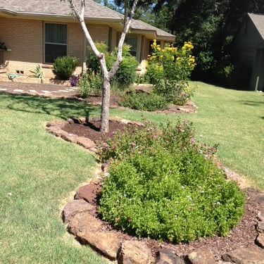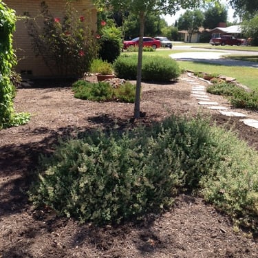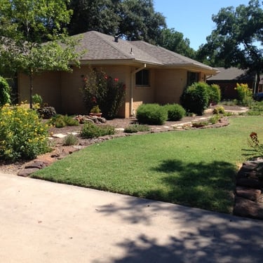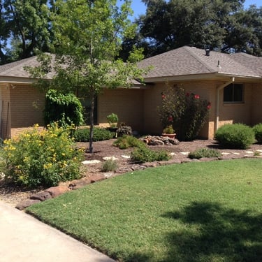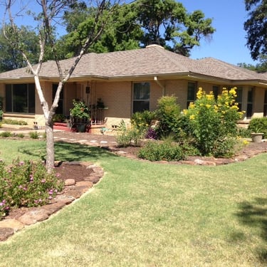 Existing turf and underperforming plantings were selectively removed to make way for new planting areas designed to support local wildlife and thrive in the West Texas climate. Curved beds and layered plant groupings were introduced to add depth, seasonal interest, and visual movement throughout the landscape.